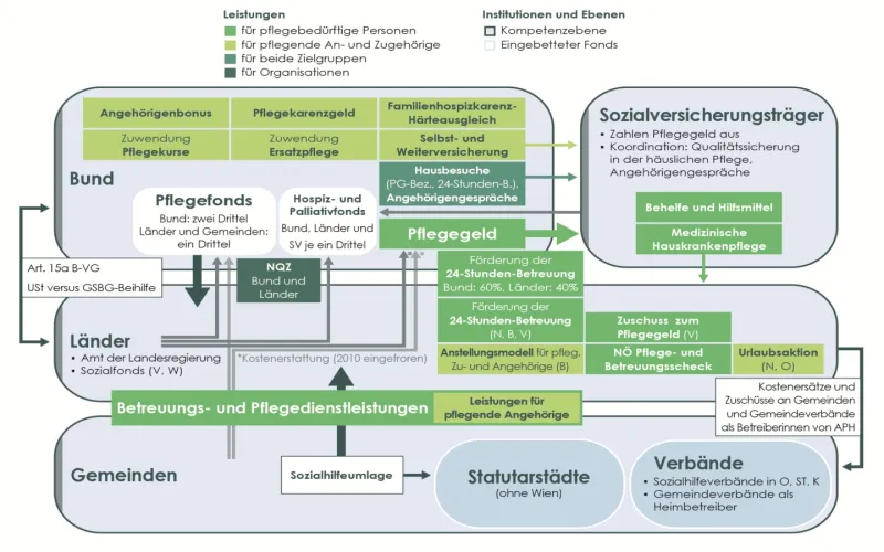 Die Finanzierungsströme zwischen Bund, Ländern, Gemeinden, Sozialversicherungsträgern und verschiedenen Fonds sind hochkomplex und intransparent – eine Entflechtung wird dringend empfohlen. Angesichts steigender Pflegekosten bis 2050 stellt sich die Frage nach einer Neuverhandlung des Generationenvertrags.