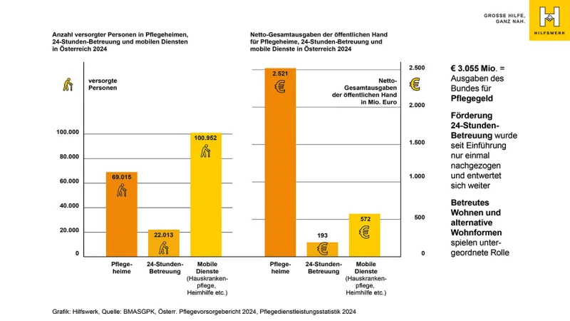 Dabei funktioniert das System grundsätzlich gut – rund 70.000 Betreuungskräfte, fast ausschließlich aus Osteuropa, ermöglichen 25.000 Menschen ein Leben zu Hause. Doch die finanzielle Schieflage wird zum Problem, wenn 80 Prozent der Österreicher den Wunsch haben, zu Hause alt zu werden.