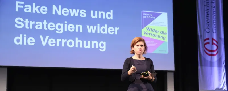 Ingrid Brodnig zeigte auf der Kommunalmesse 2025, wie man auf lokaler Ebene Fake News begegnen kann.