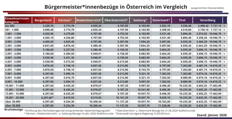 Was verdienen Bürgermeister in Österreich im Jahr 2026?